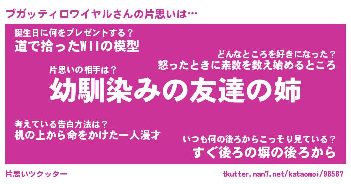 | ヘコむあだ名 | 『ブガっふぃ~』『豆乳』『ブガっ子』 |