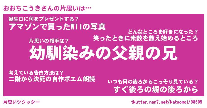 | 男性向けラノベタイトル風あだ名 | 『おおちこうきの憂鬱』 |