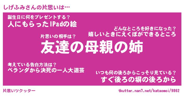 | 胡散臭い通販商品みたいなあだ名 | 『億万長者になれるブレスレット…その名も「しげふみ」』 |