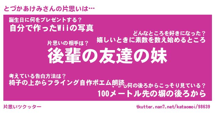 | ヘコむあだ名 | 『とづっふぃ~』『つくし』 |