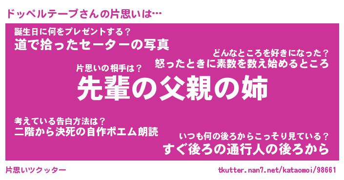 | 胡散臭い通販商品みたいなあだ名 | 『モテモテ間違いなし水晶球…その名も「ドッペルテープ」』 |