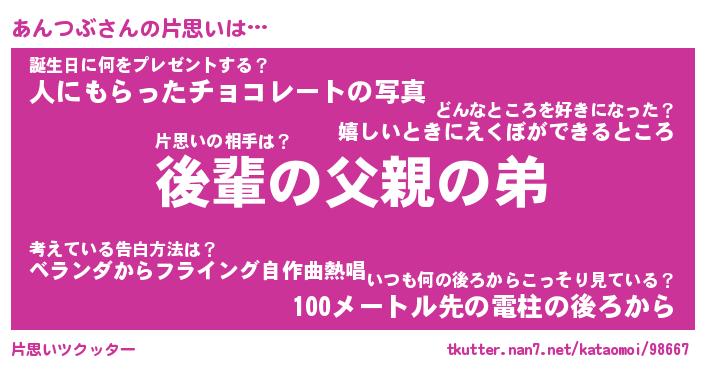 | ヘコむあだ名 | 『あんにゅー』『酢こんぶ』『あんお』 |