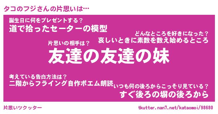 | ヘコむあだ名 | 『タコもー』『なまこ酢』『タコっ子』 |