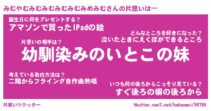 | ヘコむあだ名 | 『みむにゅー』『なまこ酢』 |