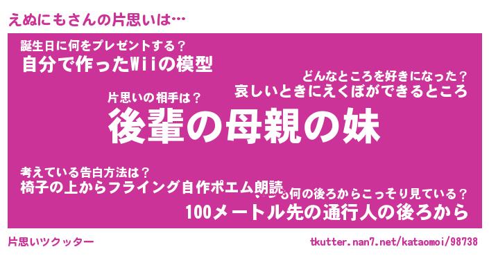 | 草はえるンゴwww …「エニ」 | 8月04日 05:56 |