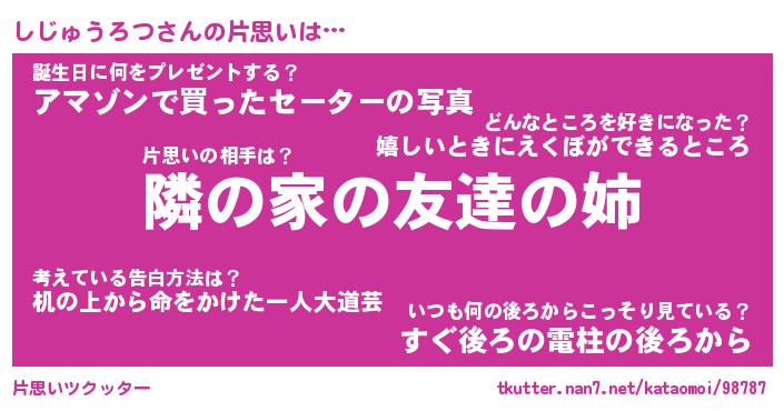 | 男性向けラノベタイトル風あだ名 | 『しじゅうろつの憂鬱』 |