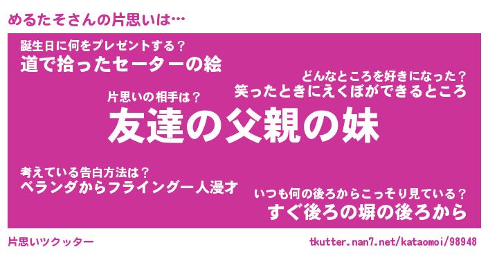 | ヘコむあだ名 | 『めるにゅー』『牛乳』『めるぷりん』 |