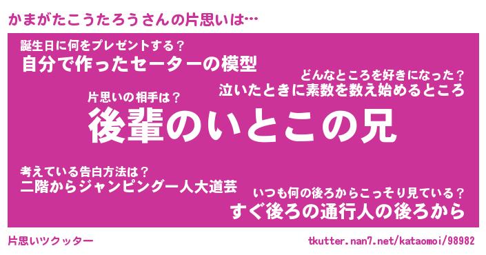 | ヘコむあだ名 | 『かまにゅー』『つくし』 |