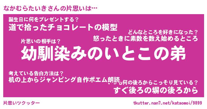 | 恥ずかしいあだ名 | 『プリティーなかむらたいき』『なかちん』 |