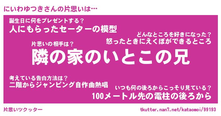 | 胡散臭い通販商品みたいなあだ名 | 『必ず成功する霊験あらたかなお札…その名も「にいわゆつき」』 |