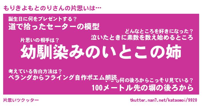 | 男性向けラノベタイトル風あだ名 | 『もりきよもとのりの憂鬱』 |