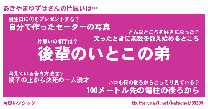 | 伝説のあだ名 | 『封印されしスナイパーあきやまゆずは』 |