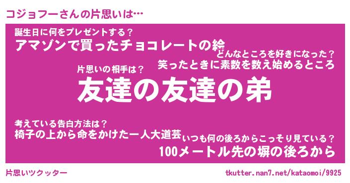 | ヒーロー風カッコイイあだ名 | 『スーパーコジョフー』『天弓騎士コジ』 |