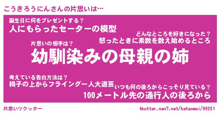 | 胡散臭い通販商品みたいなあだ名 | 『必ず成功するブレスレット…その名も「こうきろうにん」』 |