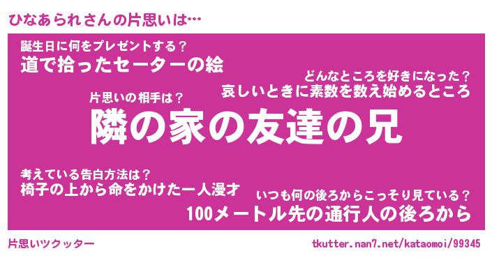 | 伝説のあだ名 | 『伝説のスナイパーひなあられ』 |