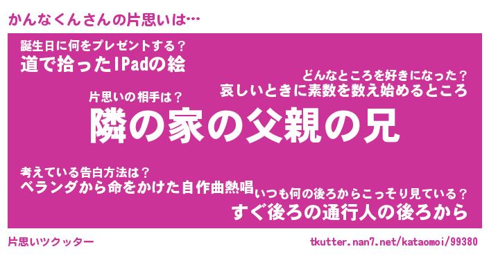 | 男性向けラノベタイトル風あだ名 | 『かんなくんの憂鬱』 |