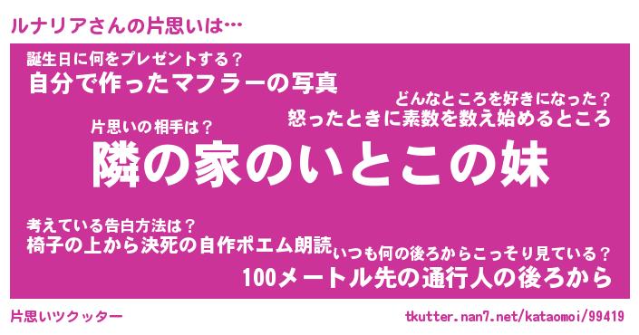 | 意味不明あだ名 | 『ペロリンルナリア』『永久保存ルナリア』 |