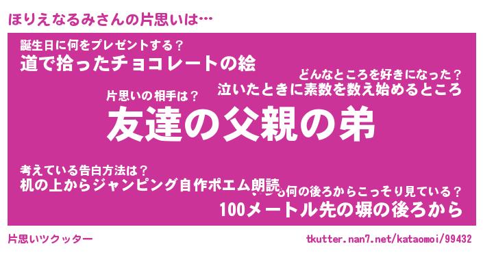 | 恥ずかしいあだ名 | 『プリティーほりえなるみ』『ほりっちょ』 |