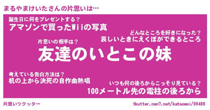 | 胡散臭い通販商品みたいなあだ名 | 『億万長者になれる水晶球…その名も「まるやまけいた」』 |