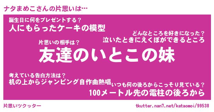 | 伝説のあだ名 | 『封印されしスナイパーナタまめこ』 |