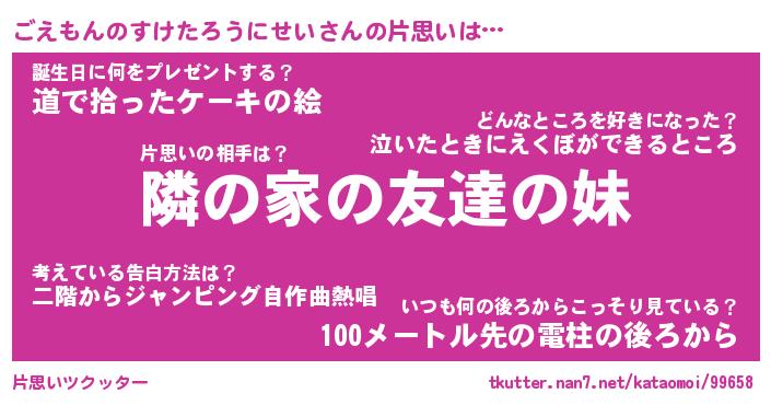 | 恥ずかしいあだ名 | 『プリティーごえもんのすけたろうにせい』 |