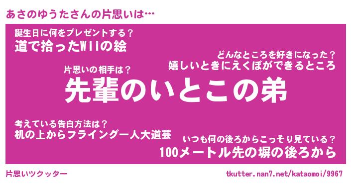 | 胡散臭い通販商品みたいなあだ名 | 『モテモテ間違いなし水晶球…その名も「あさのゆうた」』 |