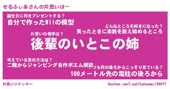 | 胡散臭い通販商品みたいなあだ名 | 『億万長者になれる水晶球…その名も「せるふぃあ」』 |