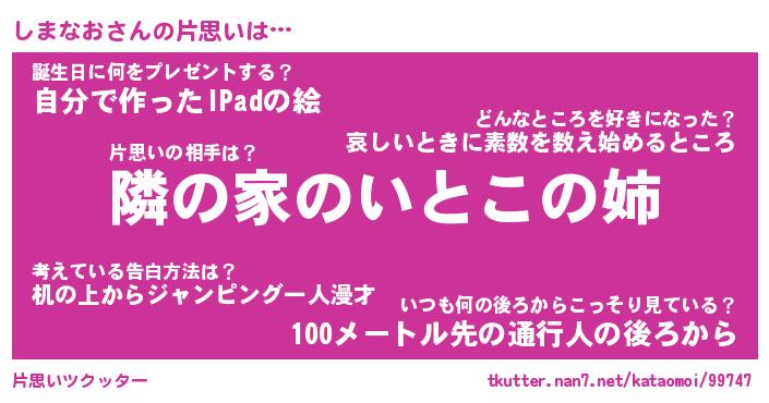 | ヘコむあだ名 | 『しまにゅー』『つくし』『しまっ子』 |