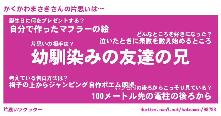| 伝説のあだ名 | 『伝説のスナイパーかくかわまさき』 |