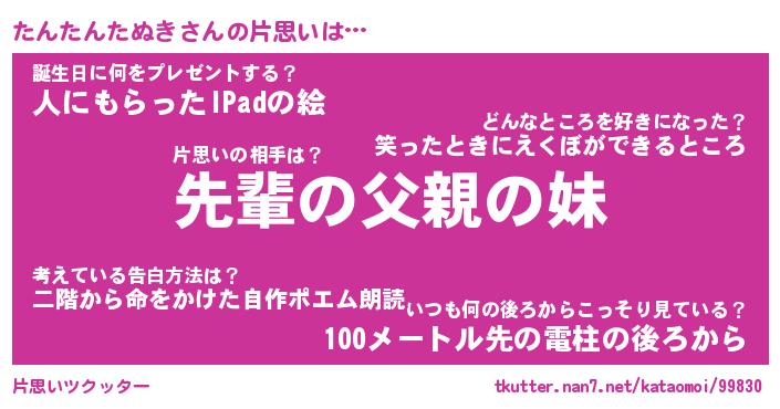 | ポケモン風あだ名 | 『タンチュウ』『タンタダネ』 |