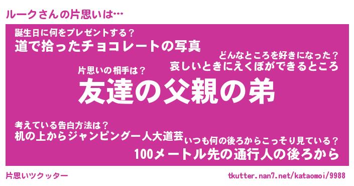 | ヘコむあだ名 | 『ルーふぇ~』『豆乳』『ルーっちょ』 |