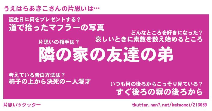 | 肩書あだ名 | 『うえはらあきこ御曹司』 |