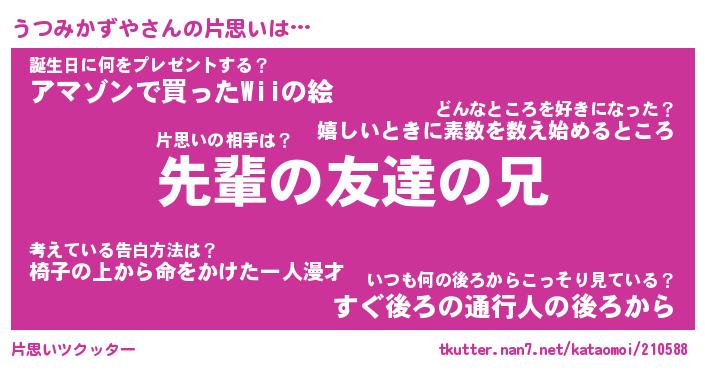 | 胡散臭い通販商品みたいなあだ名 | 『モテモテ間違いなし霊験あらたかなお札…その名も「うつみかずや」』 |