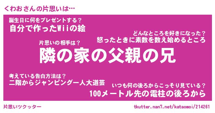 | ヘコむあだ名 | 『くわにゅー』『なまこ酢』 |