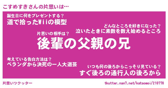 | ヘコむあだ名 | 『こすにゅー』『牛乳』『こす太郎』 |