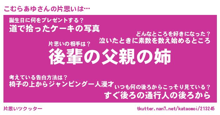 | 恥ずかしいあだ名 | 『プリティーこむらあゆ』『こむっちょ』 |