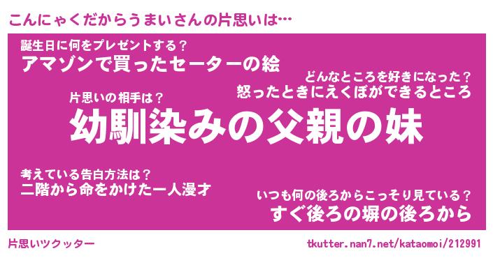 | 女子向けラノベタイトル風あだ名 | 『(仮)こんにゃくだからうまいのやんごとなき事情』 |