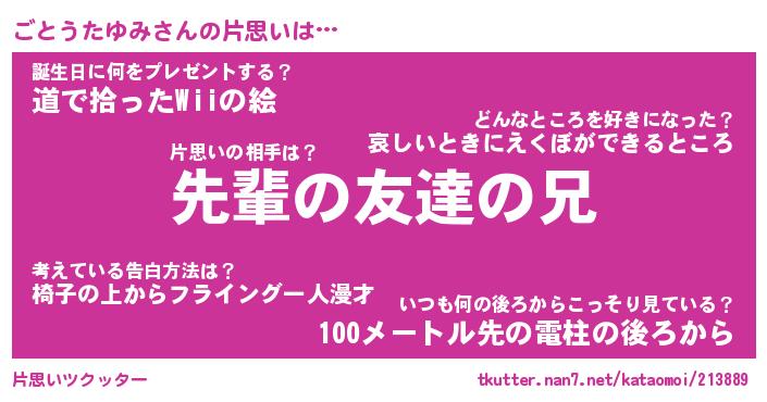| 胡散臭い通販商品みたいなあだ名 | 『モテモテ間違いなし霊験あらたかなお札…その名も「ごとうたゆみ」』 |