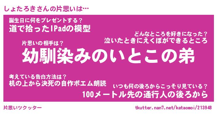 | 男性向けラノベタイトル風あだ名 | 『しょたろきの憂鬱』 |