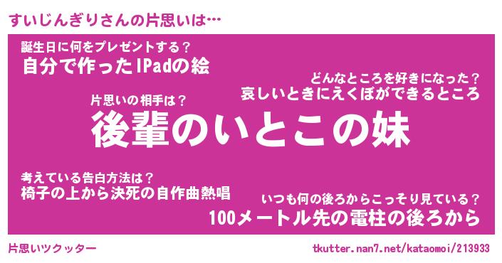 | ヘコむあだ名 | 『すいにゅー』『つくし』『すいお』 |