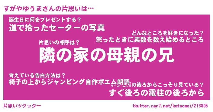 | ヘコむあだ名 | 『すがにー』『酢こんぶ』『すがっ子』 |