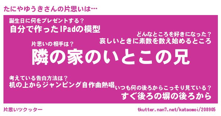 | ヘコむあだ名 | 『たににゅー』『つくし』『たにっぺ』 |