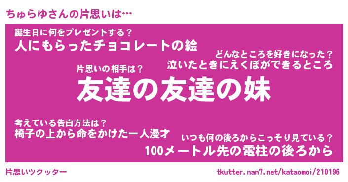 | ヒーロー風カッコイイあだ名 | 『スーパーチュラユ』『幻影騎士チュ』 |