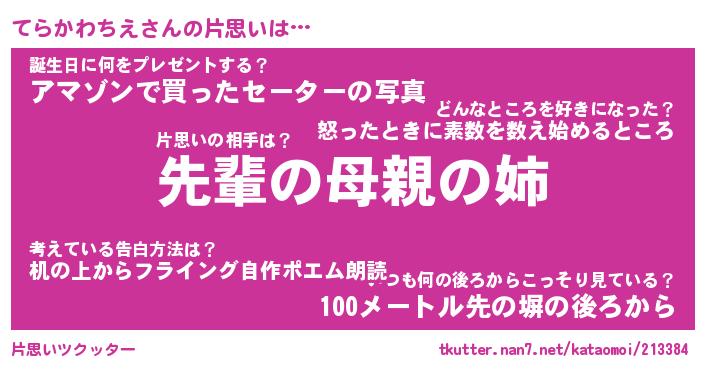 | ヘコむあだ名 | 『てらふぇ~』『なまこ酢』 |