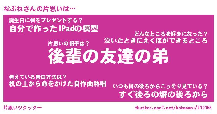 | ヘコむあだ名 | 『なぷっふぃ~』『つくし』 |