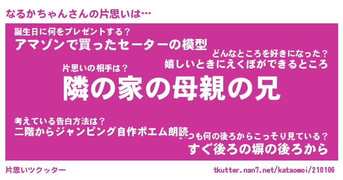 | 男性向けラノベタイトル風あだ名 | 『なるかちゃんの憂鬱』 |