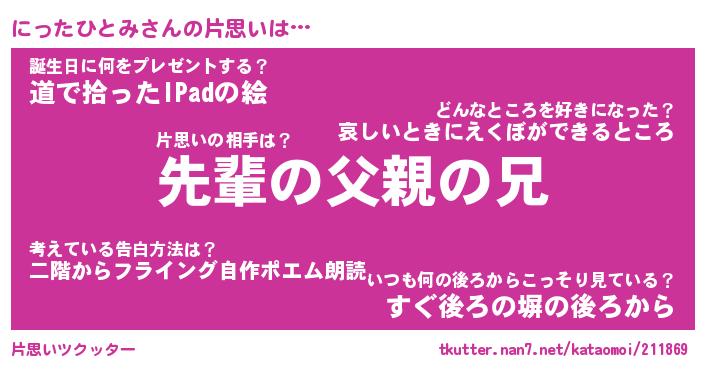 | ヘコむあだ名 | 『にっにゅー』『豆乳』『にっっぺ』 |