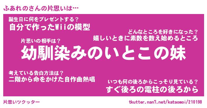 | ヘコむあだ名 | 『ふあもー』『牛乳』『ふあっぺ』 |