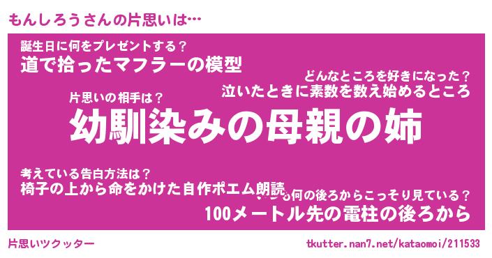 | ファンタジー風あだ名 | 『モンフェル』『エターナルモンシロウー』 |