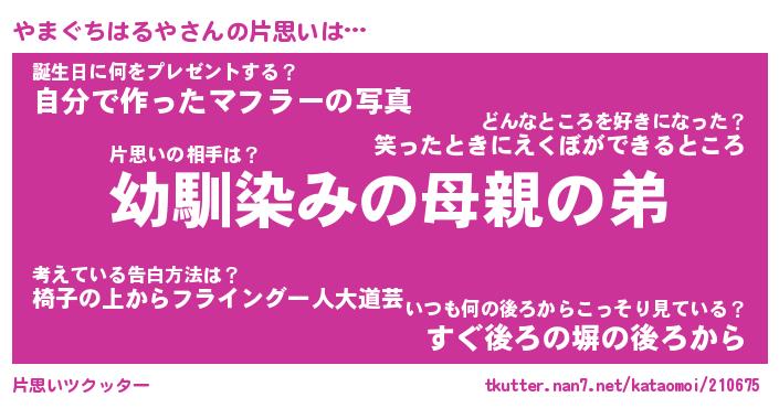 | 恥ずかしいあだ名 | 『プリティーやまぐちはるや』『やまちん』 |